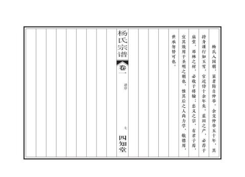 ဗ൦ሷ௶ 世承勿替可也。 宜其效用于圣明之朝也,惟其后之人尚力学,敬德用, 庙堂,邓林之材,必收于将输;忠义之宗,有君子焉, 持身谨行如玉雪,官近侍十余年矣。蓝田之产,必荐于 杨氏入国朝,显者防自仲举。余交仲举五十年,其 卷一 谱序 七 四知堂