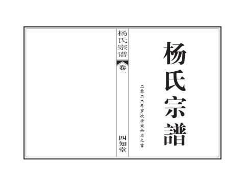 杨氏宗譜 ဗ൦ሷ௶ 卷一 二零二二年岁次壬寅六月之吉 四知堂