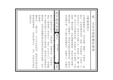 一 来昭穆不明 乃于族中索所藏诰书 家集考之 自丽水 遂过姑苏 与親族会 追思祖宗既失前谱未获 复惧后 流离 遗失前谱 至仲淹蒙窃国恩 皇佑中来守钱塘 埴 昌言六人从钱氏归朝 仕宦四方 终于他邦 子孙 孙为中吴人 皇宋太平兴国三年 曾孙坚 坰 墉 塤 渡江 为处州丽水县丞 讳隋 中原离乱 不克归 子 吾祖唐相履冰之后 旧有家谱 咸通十一年庚寅 一枝 续家谱序 贰