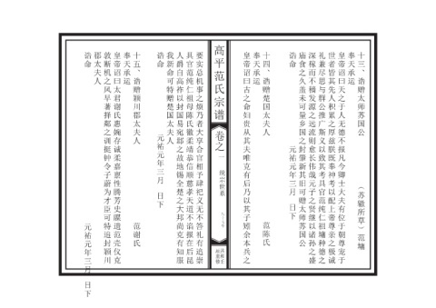 一 皇帝诏曰古之命妇贵从其夫唯克有后乃以其子矧余本兵之 奉天承运 十四 诰赠楚国太夫人 范陈氏 诰命 元祐元年三月 日下 之宝 庙食之久盖未可量乡国之封肇新其旧可赠太师苏国公 深稼而不穑发源之远流则愈长伟哉元子之贤继以诸孙之盛 礼兼尽思与群公推广斯义以致其考具官范纯仁祖墉种德之 世者皆其先人积累之厚兹朕既奉神考以配上帝尊亲之极诚 皇帝诏曰天之于人无德不报凡今卿士大夫有位于朝尊宠于 奉天承运 十三 诰赠太师苏国公 苏辙所草 范墉