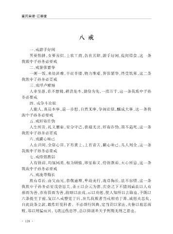 六条提至于前,复以八戒警觉于后,庶几我族者当戒相劝于善,咸惩夫恶矣,