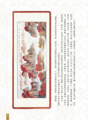 18 董观富,仙桃市城区原菜园大队人,曾任仙桃市劳动保险公司经理,现为仙桃美术家协会理事, 仙桃市老年书画家协会副会长、北京市廊桥书画院名誉院长。 山水画“鸿运当头”画面中契合经典的风水命理知识,设色多以红色为主色调,有吉利、高贵的语 义色彩,给董氏宗族带来前程似锦、大展宏图、百事顺遂美好的期望与向往。画面中寓意解析:[山 脉]龙脉延绵,飞龙抬头,福泽子孙。[高山]坚实靠山,基业永固。[云彩]祥云天降,好运环绕,人杰地 灵。[瀑布]财源滚滚,八方聚财,财气充沛。[平安宅]人丁兴旺,子孙满堂。[树木]左边为招财树,右边挡 灾树,其它树为蓬勃之意,董氏宗族拥有更加繁荣富贵的人生。[水潭]财富、人脉聚集在聚宝盆中。