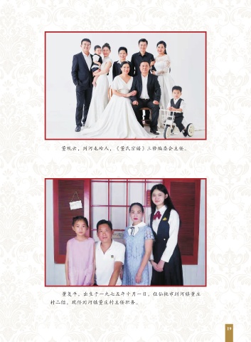董观云, 剅河屯岭人,《董氏宗谱》三修编委会主任。 董复平, 出生于一九七五年十月一日,住仙桃市剅河镇董庄 村二组。现任剅河镇董庄村主任职务。 19
