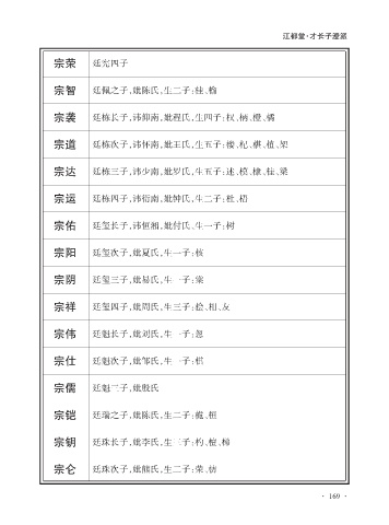 宗达 廷栋三子,讳少南,妣罗氏,生五子:述、模、棣、桂、梁
