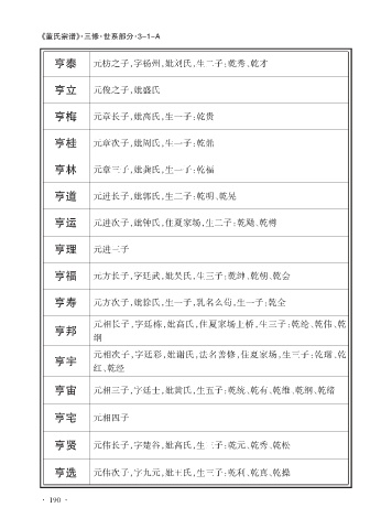 亨贤 元伟长子,字楚谷,妣高氏,生三子:乾元、乾秀、乾松