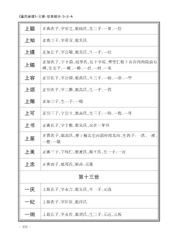 上容 正引长子,字公顔,妣高氏,生三子:一榜、一崇、一华