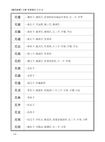 元杞 一璠之子,妣徐氏,住老祠堂湾,生一子:亨榜