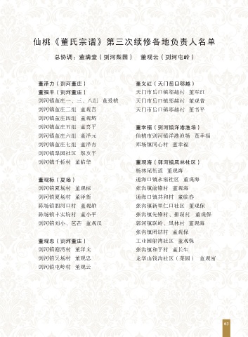 仙桃《董氏宗谱》第三次续修各地负责人名单