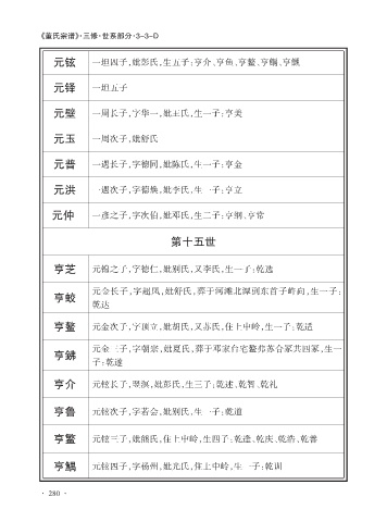 亨鳘 元铉三子,妣熊氏,住上中岭,生四子:乾逢、乾庆、乾浩、乾善