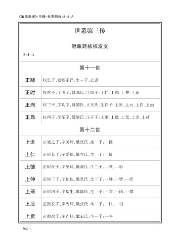 正时 权次子,字明字,妣陈氏,生四子:上仁、上德、上仲、上琦