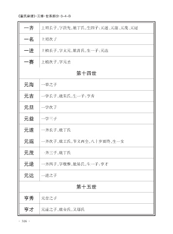 一齐 上昭长子,字洪先,妣丁氏,生四子:元遂、元遐、元茂、元逯