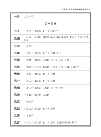 元旭 一魁之子,字东爽,妣江氏,生四子:亨寿、亨权、亨柄、亨兰