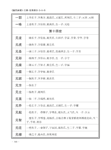 元起 一伦次子,一春嗣子,字明良,妣朱氏,又马氏,生一子:亨言