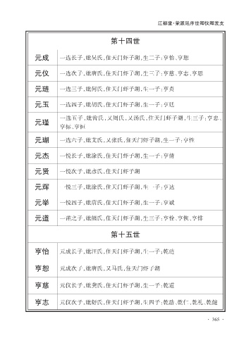 元仪 一选次子,妣唐氏,住天门虾子湖,生三子:亨慈、亨志、亨思