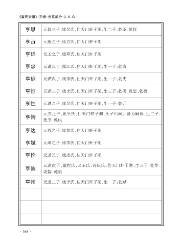亨性 元瑚之子,妣吴氏,住天门虾子湖,生一子:乾元
