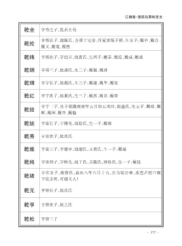 乾统 亨宙长子,字佛先,妣徐氏,生一子:履珍