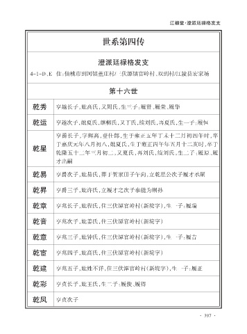 乾章 亨兆长子,妣程氏,住三伏潭官岭村(新垸字),生一子:履瑞