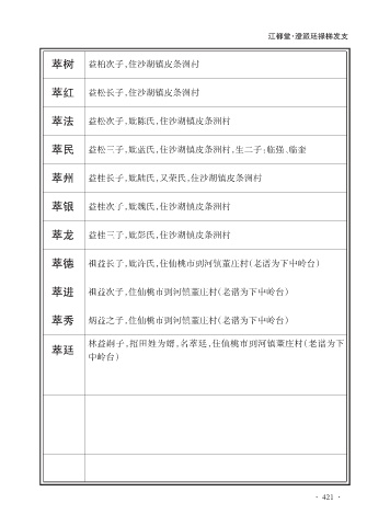 萃民 益松三子,妣蓝氏,住沙湖镇皮条洲村,生二子:临强、临奎