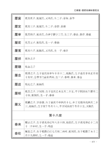 履宽 乾芳六子,妣陈氏,又冯氏,生一子:泰沣