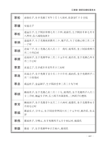 萃忠 成益次子,金益嗣子,生于同治壬申二月二十九午时