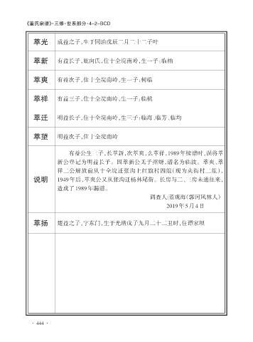 有益公生三子,长萃新,次萃爽,么萃祥,1989年续谱时,误将萃