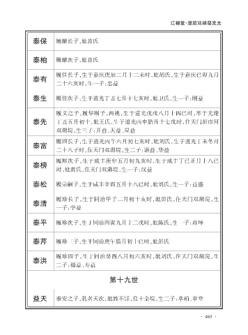 泰生 履佳次子,生于道光丁丑七月十七亥时,妣卫氏,生一子:刚益