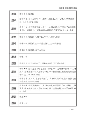 履榜 乾柏长子,乾俊嗣子,妣李氏,生二子:泰舒、泰安