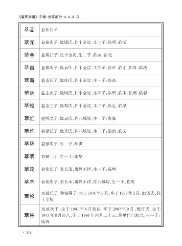 萃茂 益传长子,名长茂,妣姓不详,生一子:临坤