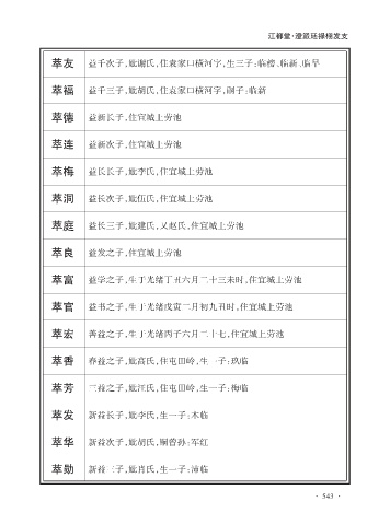 萃庭 益长三子,妣建氏,又赵氏,住宜城上劳池
