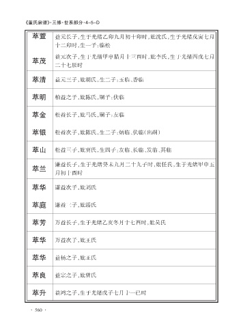 萃萱 益元长子,生于光绪乙卯九月初十卯时,妣沈氏,生于光绪戊寅七月