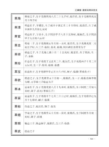 萃宝 壮益次子,生于光绪甲申正月十六子时,嗣子:临藻(萃珍次子)