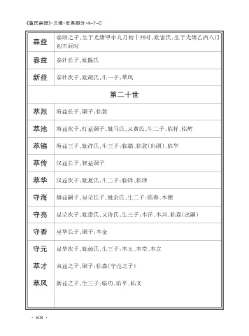 萃池 海益次子,灯益嗣子,妣马氏,又黄氏,生二子:临祥、临辉