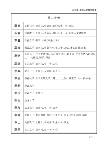 萃香 益祥次子,妣朱氏,住通海口旭光,生一女,招婿入赘名临禄