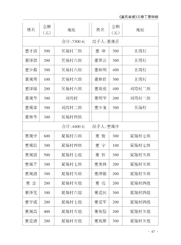 《董氏宗谱》三修丁费明细