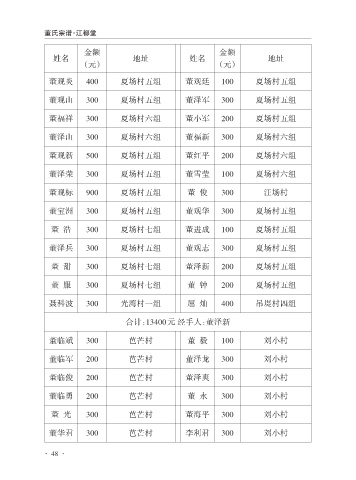 董 服 300 夏场村七组 董 钟 200 夏场村五组