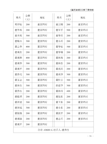 董泽成 300 董家垱村 董小东 200 董家垱村