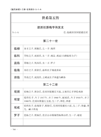 临科 萃松之子,配张氏,生二子:观堂、观成(出嗣临海为子)
