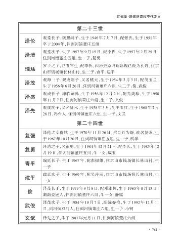 泽盛 观成长子,沛临嗣孙,生于 1956 年 12 月 2 日,配光美珍,生于 1958