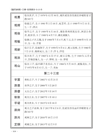 观洪 临江次子,生于 1965 年 6 月 17 日,配王京梅,生于 1969 年元月 8