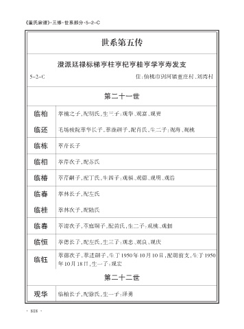临钰 萃德次子,萃进嗣子,生于 1950 年 10 月 10 日,配胡前支,生于 1950