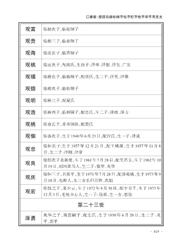 观浩 临椿四子,临相嗣子,配肖氏,生二子:泽雨、泽力