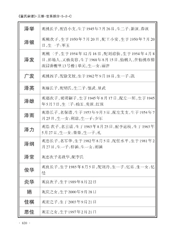 泽银 观桃次子,生于 1950 年 7 月 20 日,配王小安,生于 1950 年 7 月 20
