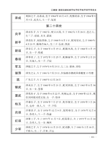 泽成 观佃之子,名落成,生于 1964年 10月 4日,配廖武珍,生于 1964年 5