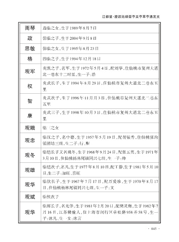 观雄 临恺次子,名凡,生于 1977 年 8 月 10 日,配王静,生于 1981 年 5 月 10