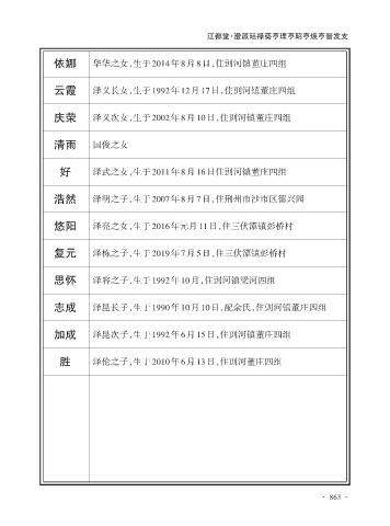 浩然 泽明之子,生于2007年8月7日,住荆州市沙市区德兴园