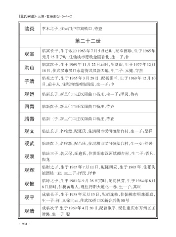 观文 临法长子,名唯楚,配张氏,住洪湖市汊河镇顔台村,生一子:呈祥