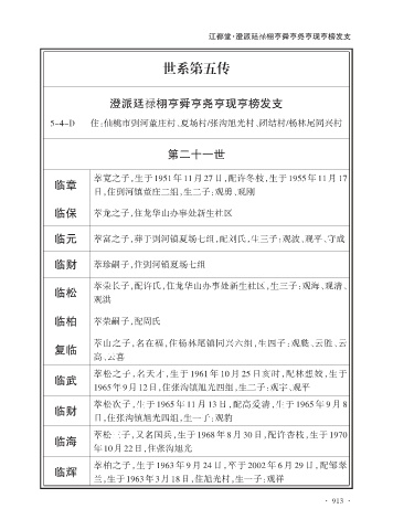 临章 萃宽之子,生于 1951 年 11 月 27 日,配许冬枝,生于 1955 年 11 月 17