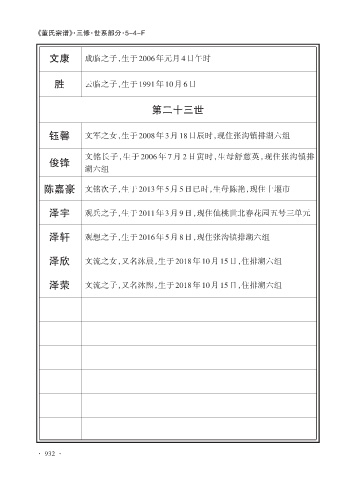 文铭长子,生于 2006 年 7 月 2 日寅时,生母舒慈英,现住张沟镇排