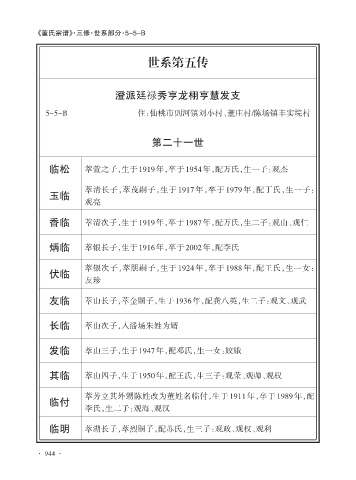 临松 萃萱之子,生于1919年,卒于1954年,配万氏,生一子:观杰