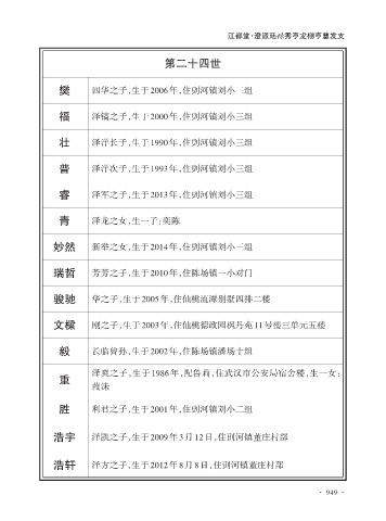 毅 长临曾孙,生于2002年,住陈场镇潘场十组